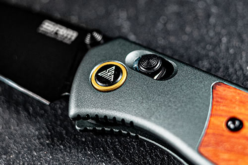 Canivete de fácil abertura e operação com uma única mão, ideal para uso diário. Possui uma thumb stud (pino para o polegar) em ambos os lados da lâmina, garantindo praticidade e rapidez na abertura.