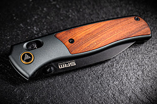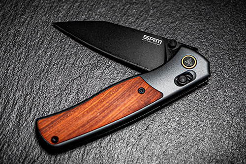 O canivete SRM 259L-AG utiliza o alumínio anodizado 6063 na cor verde, combinado com detalhes de madeira Jacarandá. Essa união de materiais proporciona leveza, resistência e um visual elegante e muito bonito ao canivete.