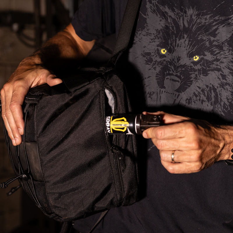 A mochila Wolverine acompanha um bolso de garrafa estruturado e ajustável. Compatível com garrafas de 650ml até 1200ml.